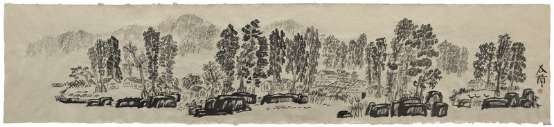 Xu Bing’s method explores the relationship between the written Chinese language and painting, and also rediscovers and highlights the connection between nature and writing in Chinese culture. In his new work The Suzhou Landscript (EA2007.73-76), Xu Bing has used his method to make copies of early landscape paintings by famous artists of the Ming (1368-1644) and Qing (1644-1911) dynasties. The Chinese landscape tradition emphasizes continuity. Each generation of painters has copied earlier masters while also adding something new, and this has kept the tradition alive over 100s of years. Xu Bing breathes new life into it in the 21st century.