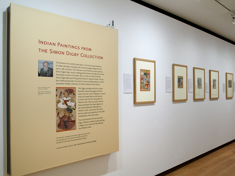The Museum has recently been given a rich and unusual collection of Indian paintings, drawings and manuscript pages dating from the 15th to 19th centuries. The collection was formed over many years by Simon Digby (1932-2010), a distinguished historian of India and a former Ashmolean curator in the 1970s. Born in India as a child of the Raj, Simon Digby later spent long periods there in study and travel. He was also a lifelong frequenter of auction houses and antique dealers, and he assembled notable collections of Indian metalwork and sculpture.