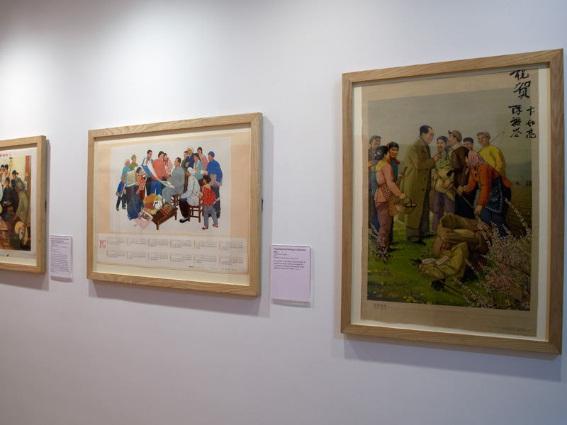 In that period, the appearance of individual expression in works of art was discouraged and denounced. Cinema, theatre and musical performances were limited to a handful of ‘model’ productions imposed by Mao’s wife Jiang Qing. Paintings and calligraphy were mostly produced collaboratively or anonymously. Visual imagery of the leader and his state propaganda appeared everywhere – on large posters or small papercuts, and on items of everyday use. Sources for the images included both traditional Chinese compositions and Soviet socialist motifs. The printed, woven, modelled and cut examples in this exhibition were all collected in China between 1968 and 1979.