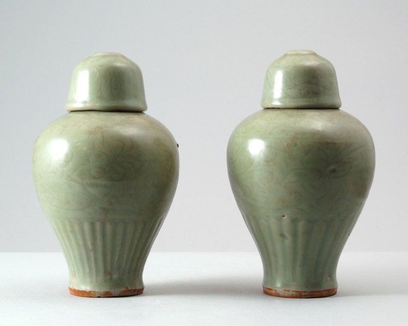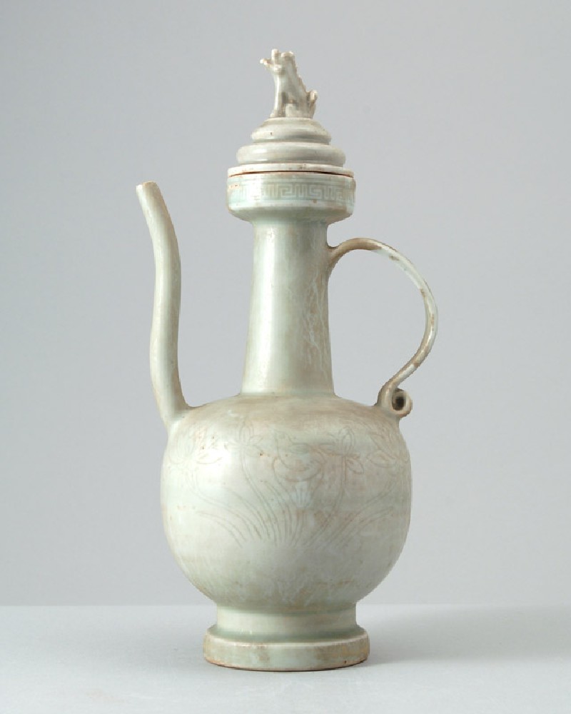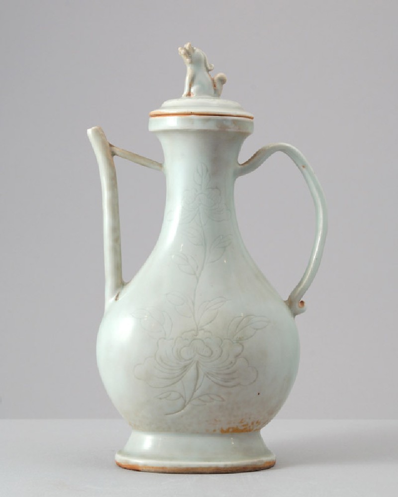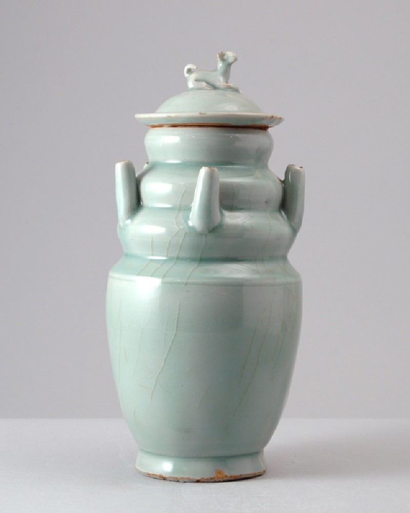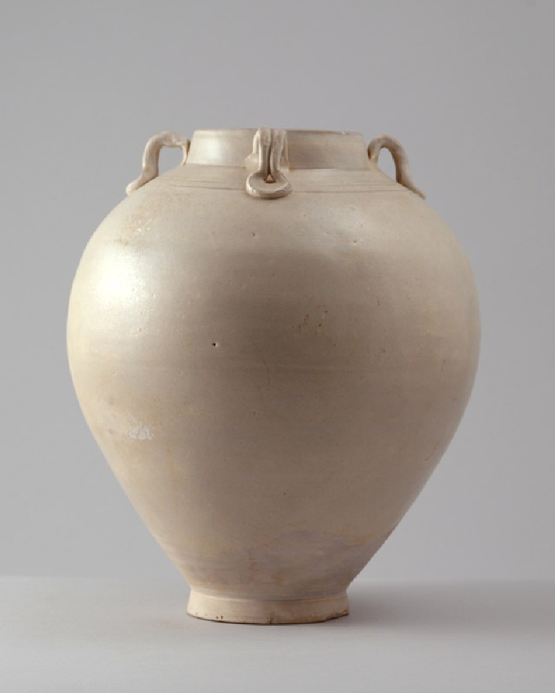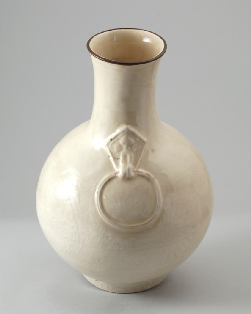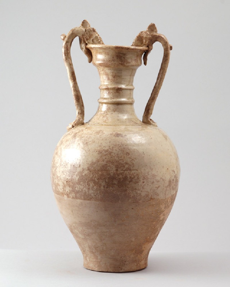 White ware vase with lotus decoration and taotie mask handles (LI1301.60.1)