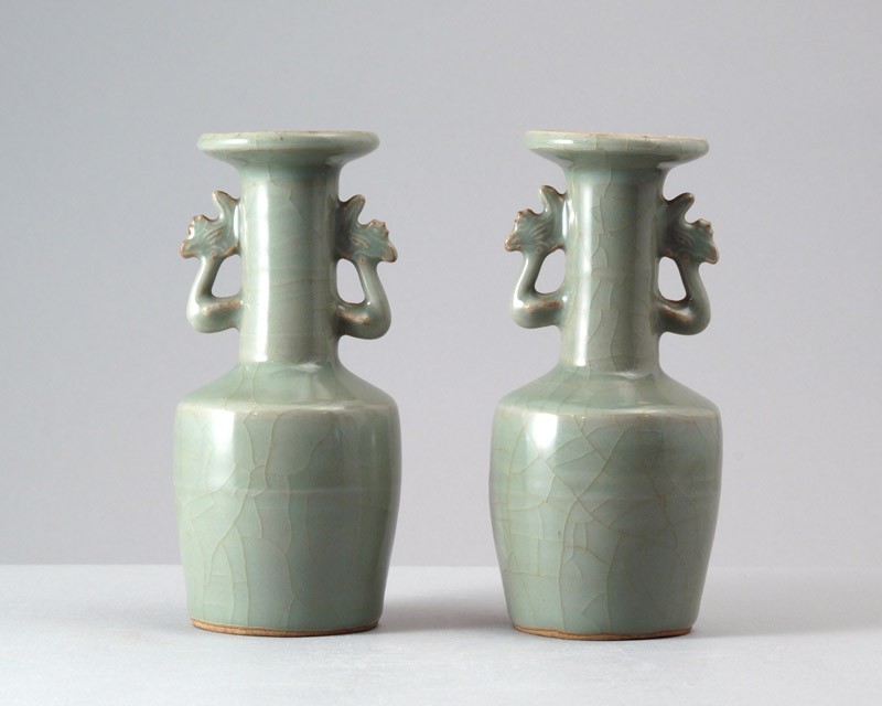 White ware vase with lotus decoration and taotie mask handles (LI1301.60.2)