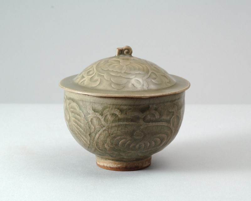 White ware bowl and lid with lotus petal decoration (LI1301.91)