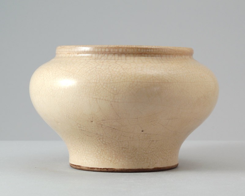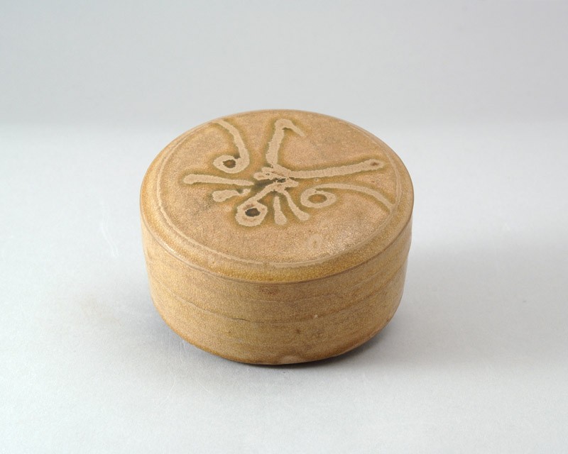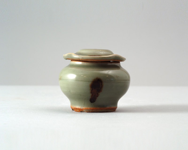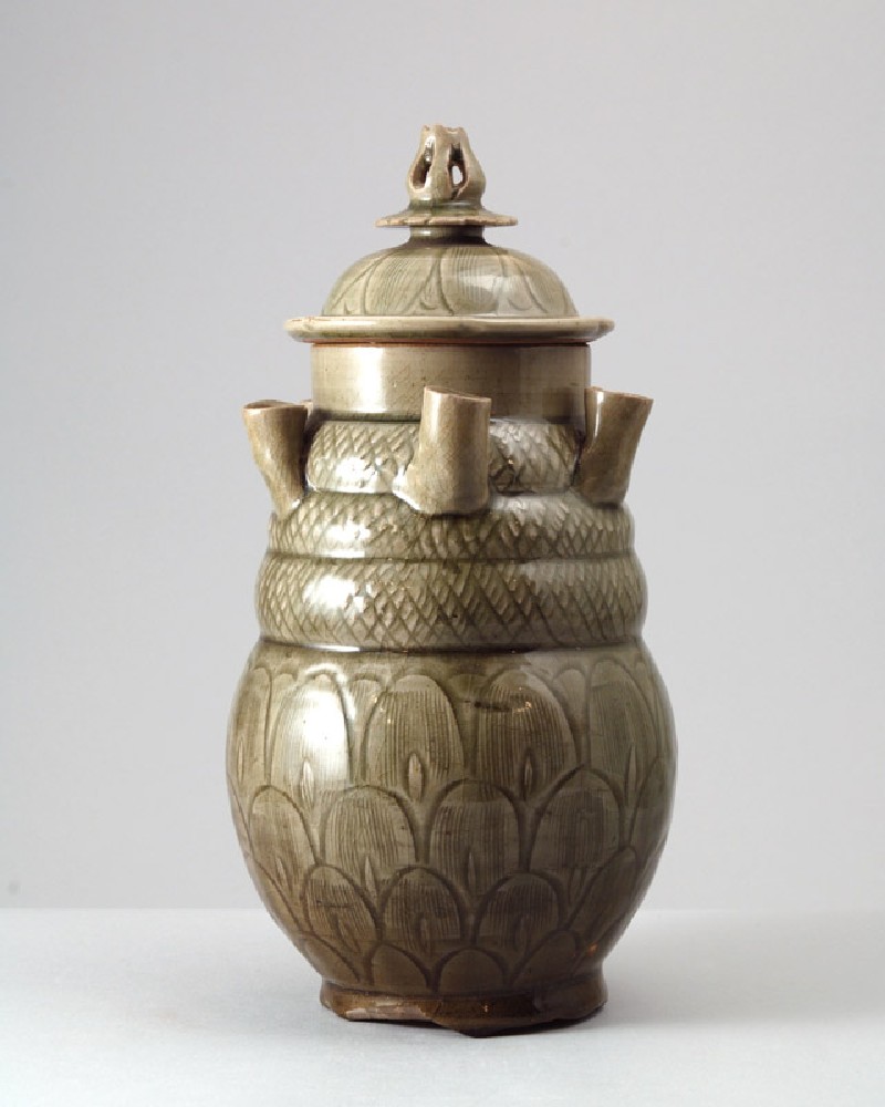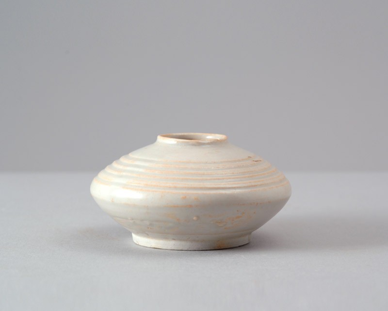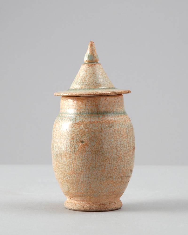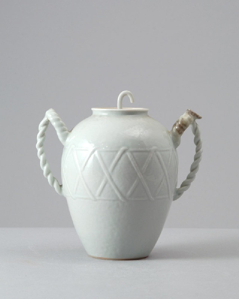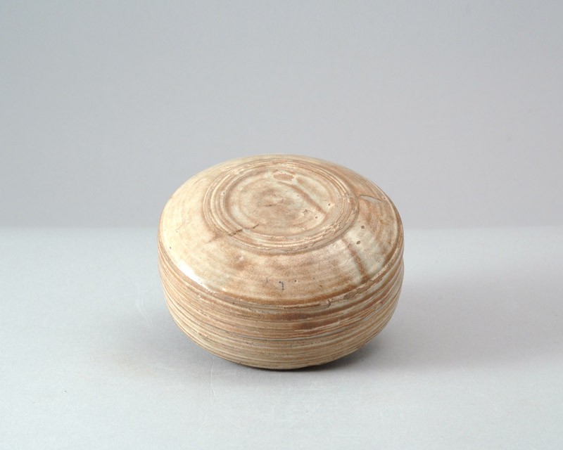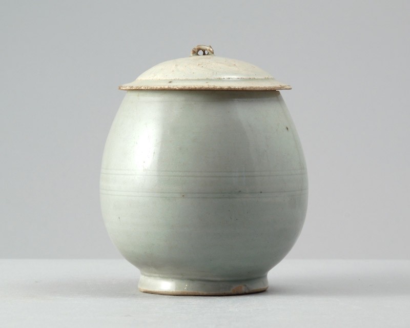 White ware jar and lid with diagonal stripe decoration (LI1301.145)
