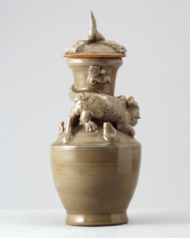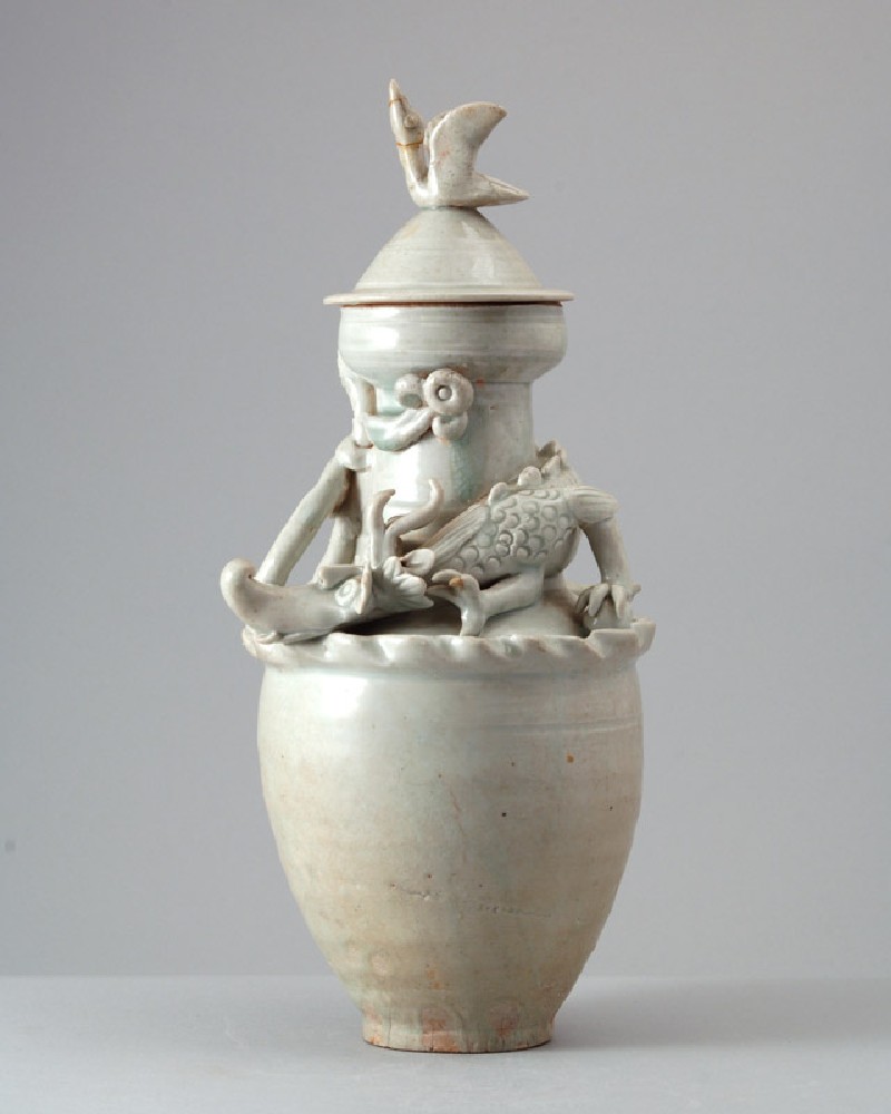 White ware funerary vase and lid with a dragon and bird (LI1301.242)