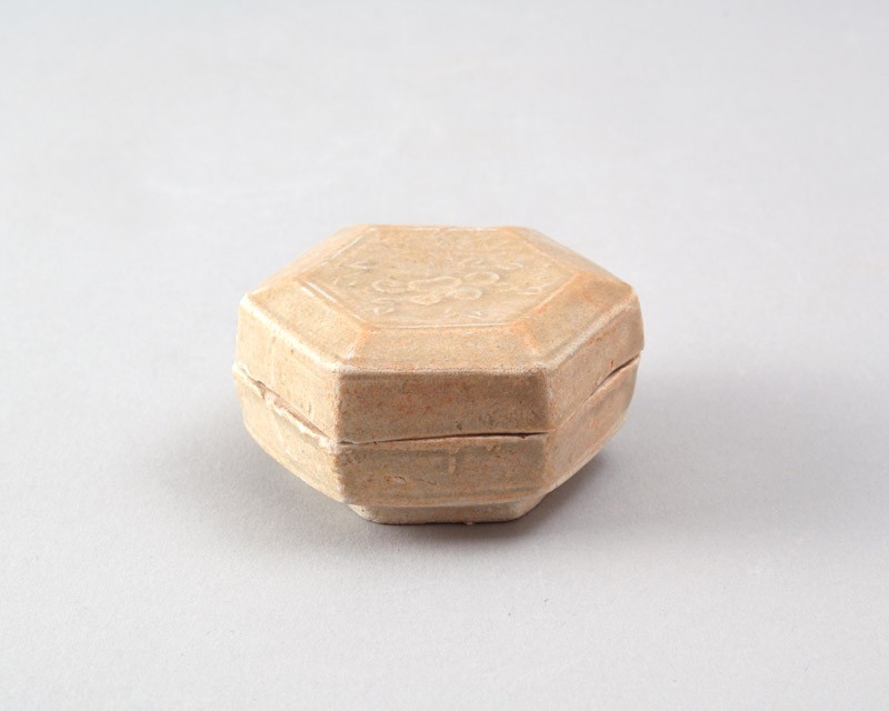 White ware hexagonal box and lid with floral decoration (LI1301.292)