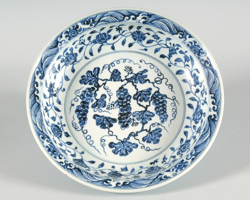 White ware bowl with rocks emerging from waves (LI1301.322)