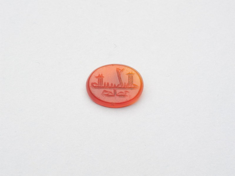 There are thirty seals included in this group, and although they are not numerous, they are rich in variety. The most frequent gem is cornelian [2], followed by haematite [3]. Four seals are in onyx of different colours [4], three are in garnet [5] and three others in chalcedony[6]. There is also one seal in rock crystal [7].