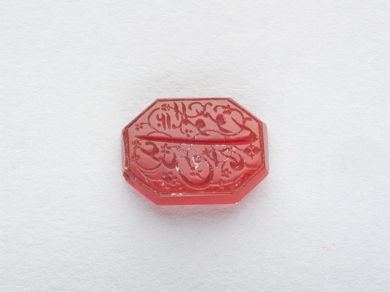 Octagonal bezel seal with nasta‘liq inscription, scroll, and floral decoration (LI1008.112)