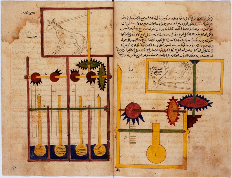 This unusual manuscript is a copy of one of the most popular treatises of engineering produced in the Islamic tradition, The Book of Knowledge of Ingenious Devices. First composed by al-Jazari in 1206 AD, it is a compendium of mechanical devices primarily intended for princely entertainment, such as elaborate clocks, automated fountains and drinking vessels, and machines activated by heat or water. In the treatise the devices are described in detail, and an illustration of each assembled machine is also provided.
