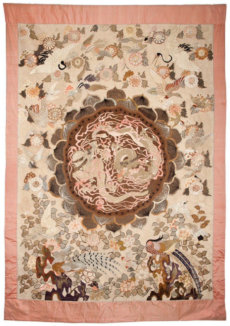 Oxford: Ashmolean Museum, 9 November 2012-27 January 2013, Threads of Silk and Gold: Ornamental Textiles from Meiji Japan, Clare Pollard, ed. (Oxford: Ashmolean Museum, 2012), no. 4 p. 92, illus. pp. 92-93 & last page