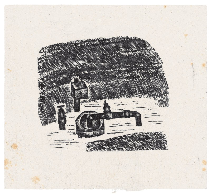 This print is part of the Shattered Jade series which were produced while Xu Bing was a student at the Central Academy of Fine Arts in Beijing. Many depict interactions with nature, and capture the simplicity of rural life. The prints also show some of Xu Bing’s explorations of the print medium and his use of Chinese character forms in the compositions.