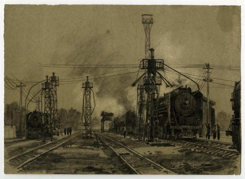 Xu Bing drew a number of industrial subjects early in his career. Fengtai train junction is in southwest Beijing. It is the site of China’s main train maintenance depot, established in 1892 and entrusted with Mao’s personal locomotive.