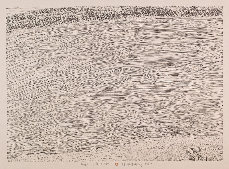 This print belongs to the multi-part work Five Series of Repetitions. A complete scroll from the series (LI2007.63) is displayed in the next gallery. Though many of the motifs in this series of prints, and particularly those relating to landscape, appear in Xu Bing’s early drawings and prints their use here is quite different. Xu Bing has said that the Five Series of Repetitions include much of the groundwork for his Tianshu (Book From the Sky), 1987–1991, which he had begun working on at the time some of these individual prints were produced. They mark his move away from the socialist subjects and concerns of his early career, and his move into the world of contemporary art.
