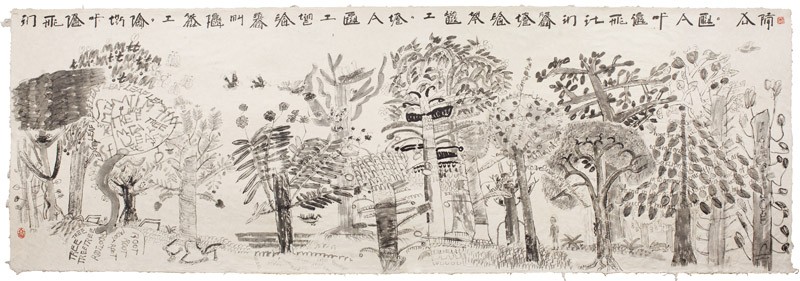 The inscription in ‘square word calligraphy’ reads ‘In the process of this painting, I started recording my experience each time I copied a tree. I discovered that each tree contained in it the secret of a child.’
