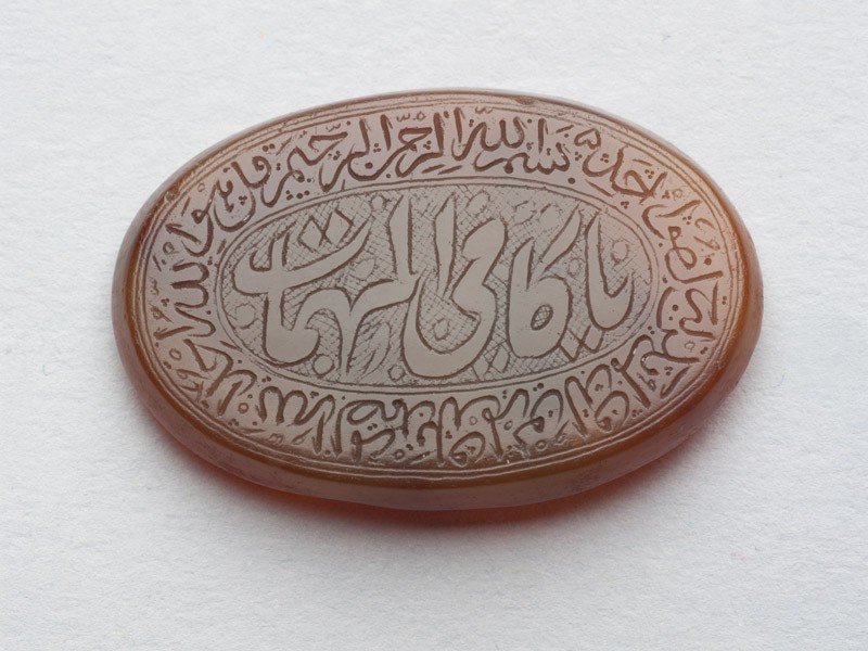 Oval bezel amulet with thuluth and nasta’liq inscription and concentric circle decoration