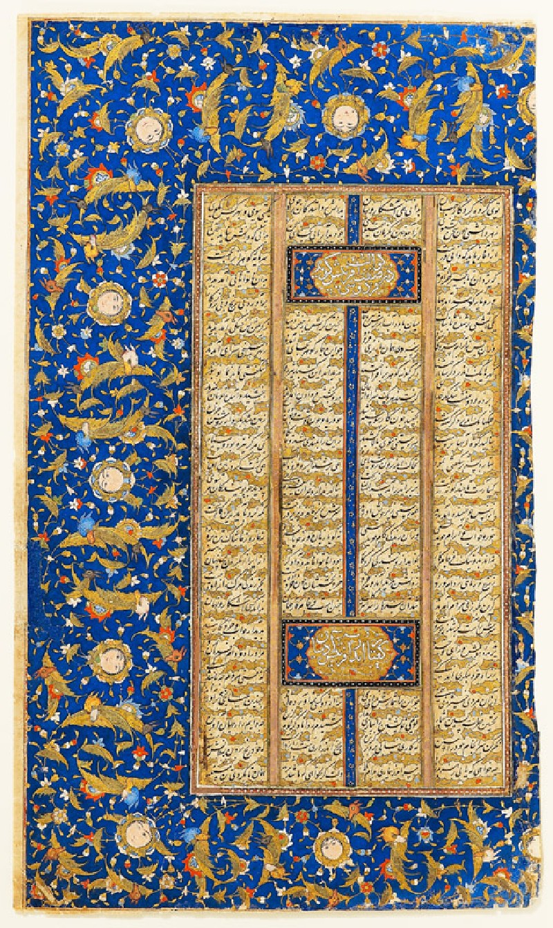 Page of calligraphy in nasta‘liq script, with illuminated margins