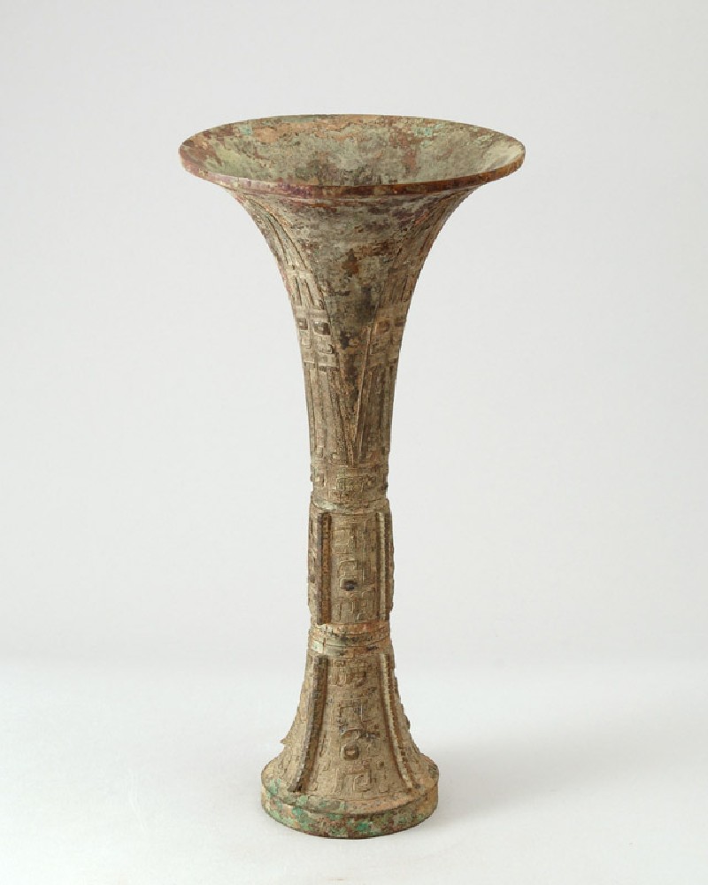 Chinese ritual wine vessel with flaring mouth and foot.