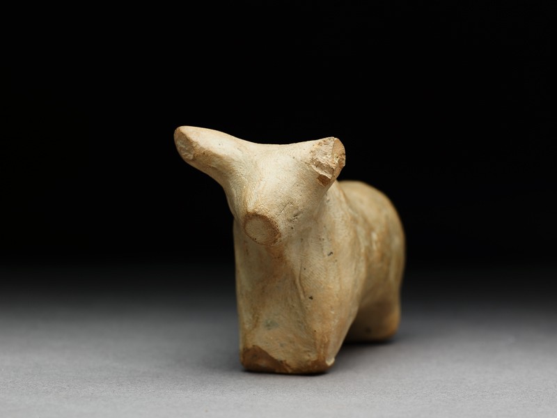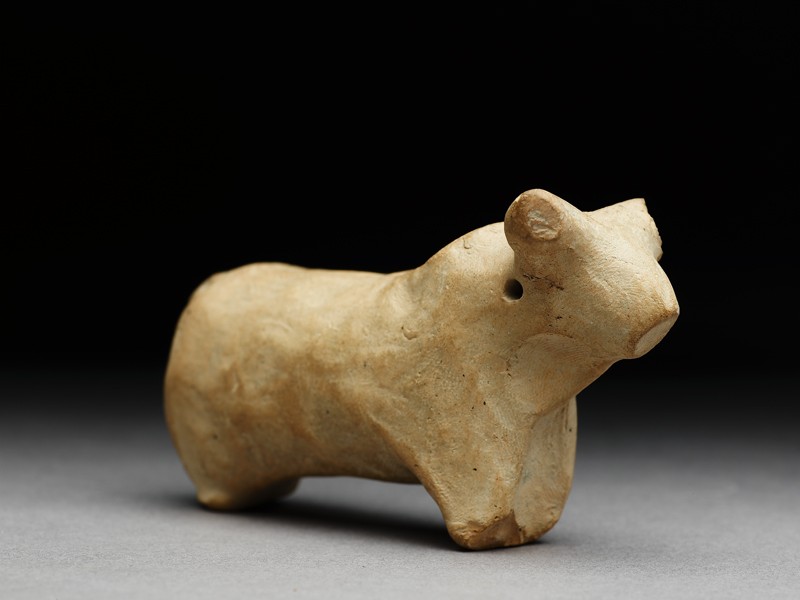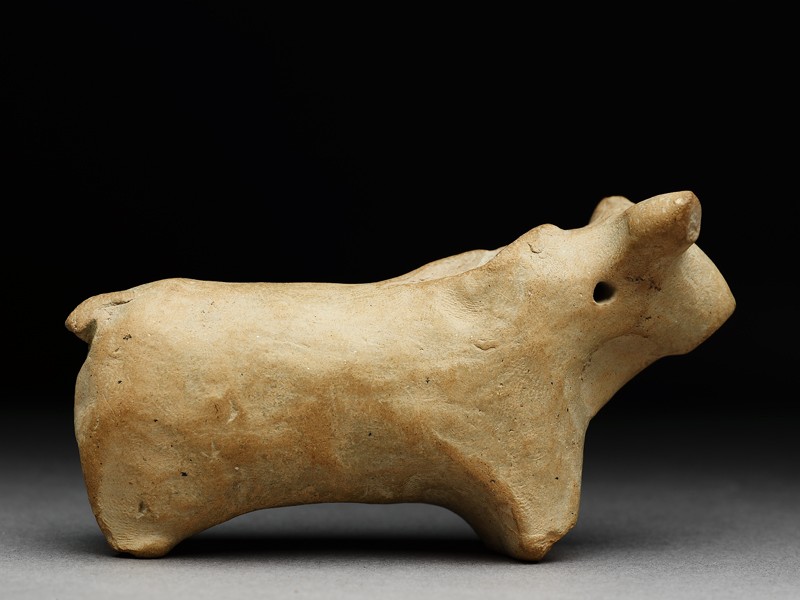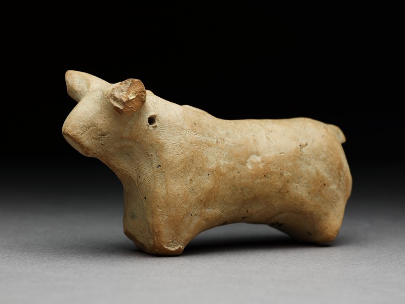 This animal has holes drilled at the neck, suggesting it was fitted to a model cart.